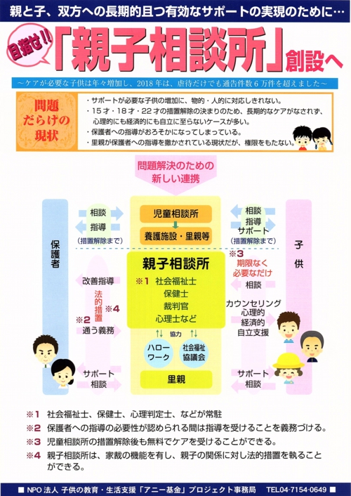 その上で、様々な支援機関を受けていただき、家族本来の形態を取り戻せれば・・・と考えたのが親子相談所という組織です。